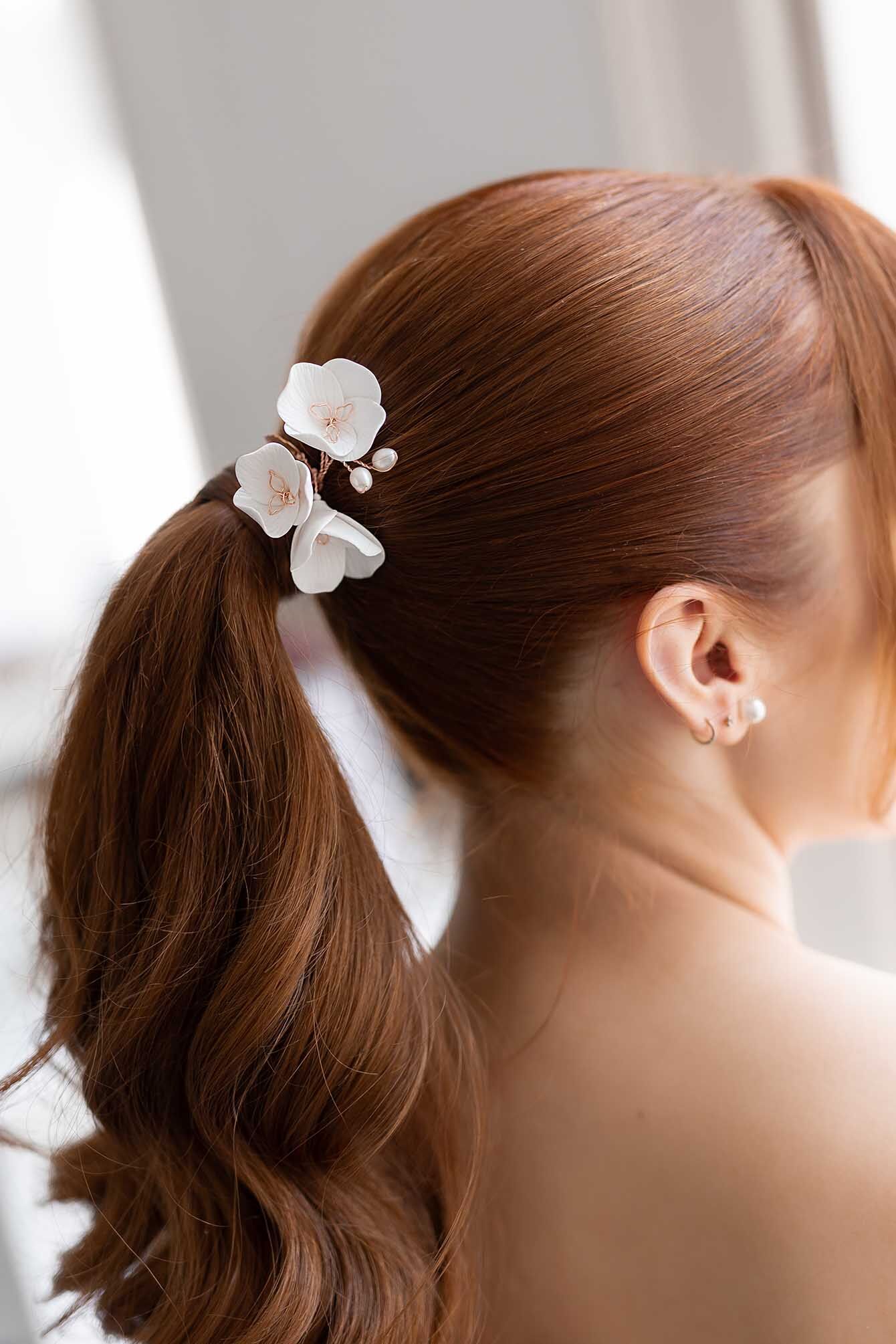 Orchidea hajtű esküvői hajdísz