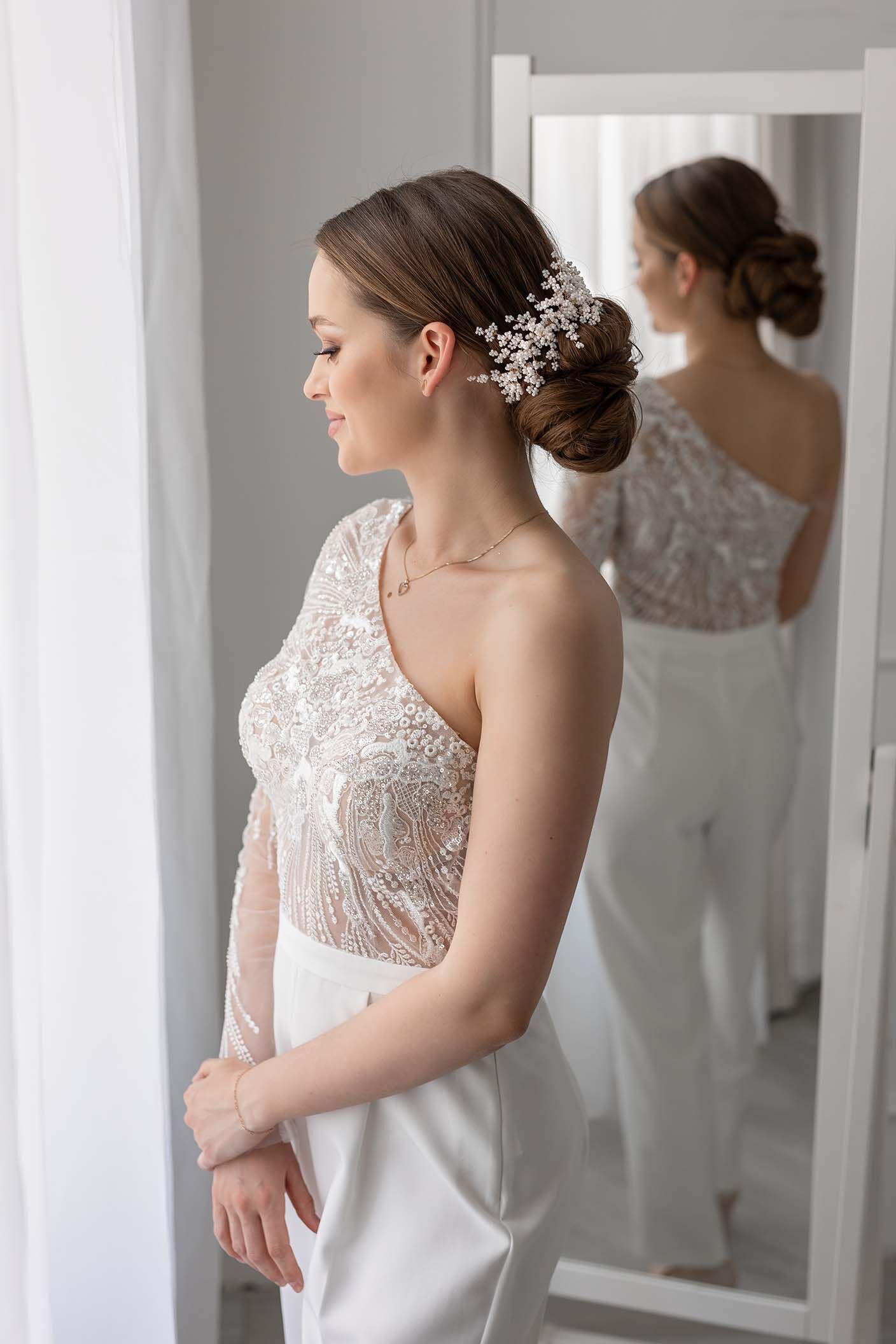 Fésűs hajdíszek: ezek könnyen beilleszthetők kontyba, copfba vagy félig feltűzött hajba, és stabilan a helyükön maradnak egész nap.