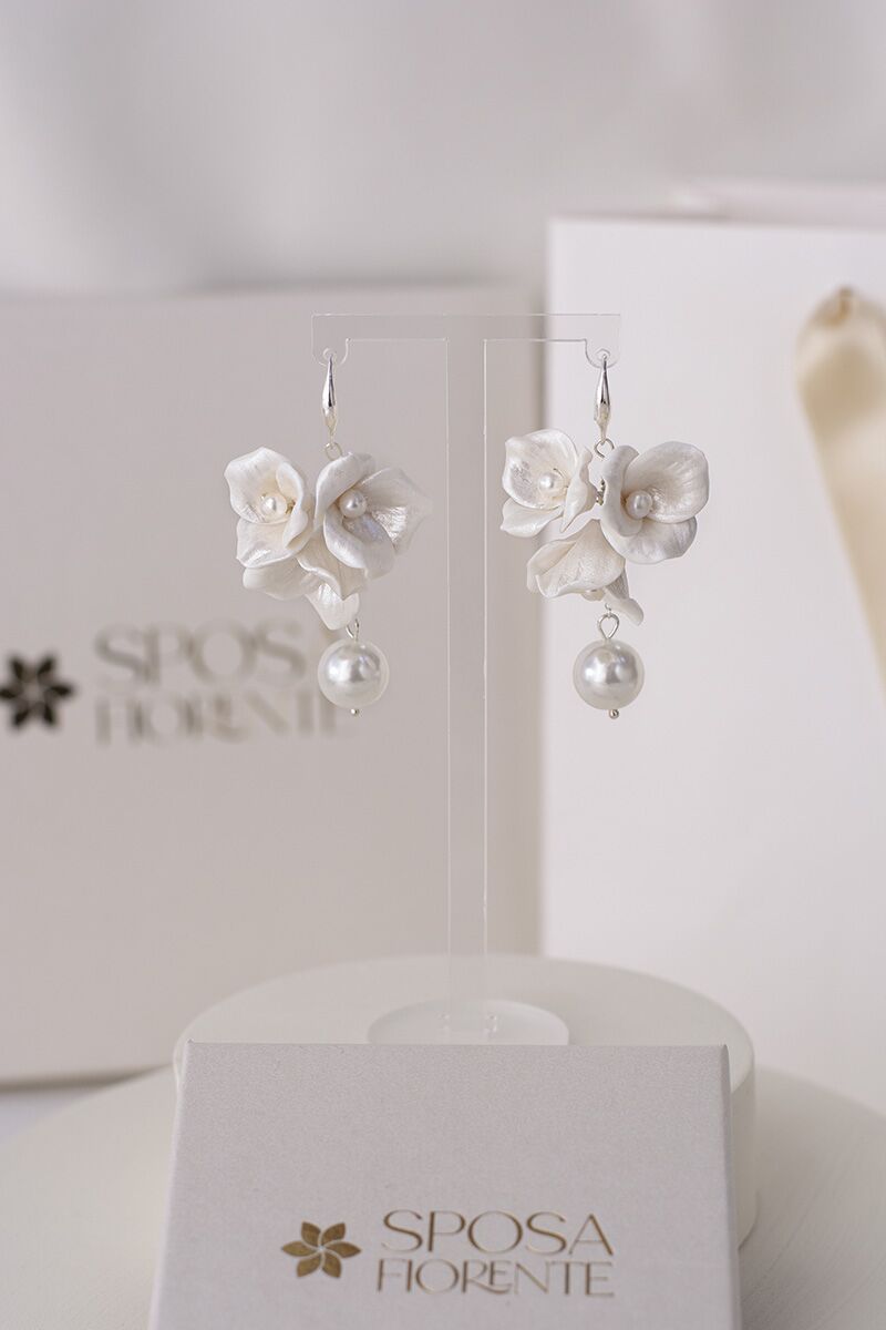 Az Iris porcelán virágos menyasszonyi fülbevaló hossza 6 cm.
