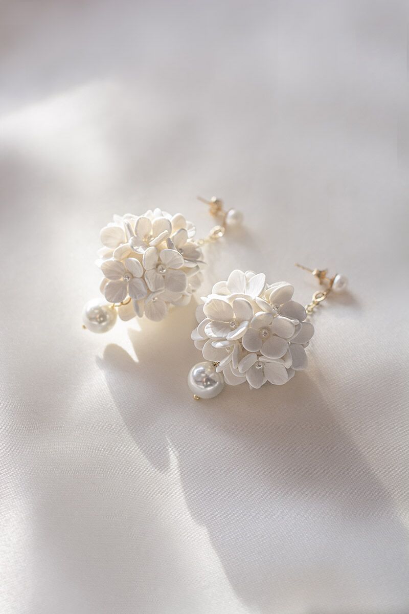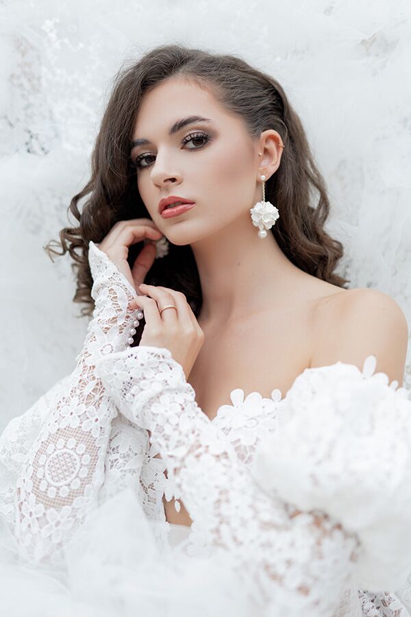 A Luna fehér menyasszony fülbevalót a hold lágy formája ihlette. A kerek, láncon függő porcelánvirágok és a nagy méretű igazgyöngy különleges, mégis elegáns megjelenést ad. Ez az ékszer igazi statement darab, amely kiemeli a menyasszony arcát és frizuráját. A felhasznált virágok minden egyes szirma egyedileg, kézzel készül rendkívüli odaadással és figyelemmel.