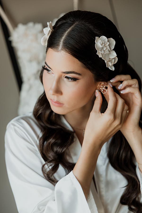 A felhasznált porcelán virágok minden egyes szirma egyedileg, kézzel készül rendkívüli odaadással és figyelemmel. Ezek az egyedi, kézzel készített hajékszerek nemcsak esztétikai szempontból kiemelkedőek, de strapabírók is. Jól ellenállnak a kisebb sérüléseknek, repedéseknek, így tartós választás lehet, amely akár emlékként is megőrizhető az esküvő után. A felhasznált porcelán lehetővé teszi, hogy az esküvői hajdísz minden apró részlete egyedileg megformálható legyen. Ez különösen nagy előny, ha a menyasszony szeretné, hogy a hajdísz tökéletesen illeszkedjen az esküvő tematikájához, a ruhához vagy akár a csokor stílusához.